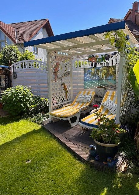 Überdachter Liegeplatz im Garten